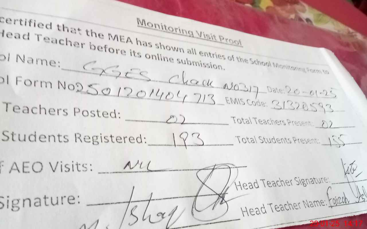 | EMIS Code: 31320593 | Name of School: GGES CHAK 317/A 6-R | |||
