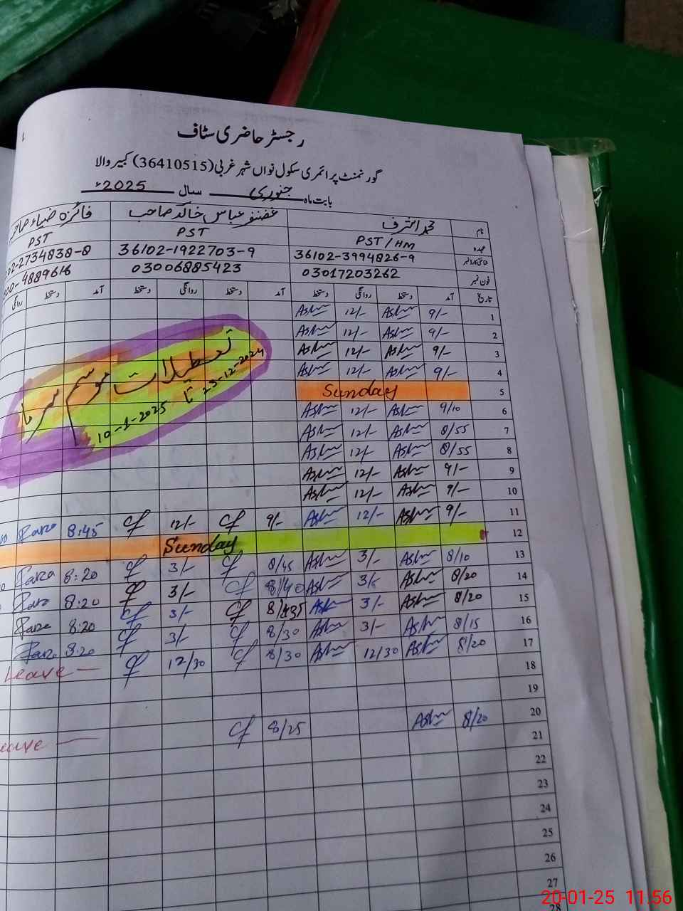 | CNIC | Full Name | Designation | R/C | Absence During Last Calender Month |