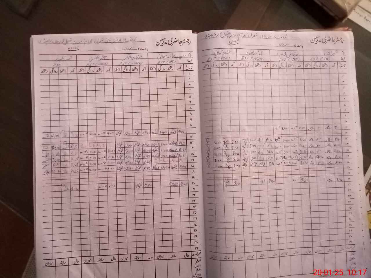 | CNIC | Full Name | Designation | R/C | Absence During Last Calender Month |