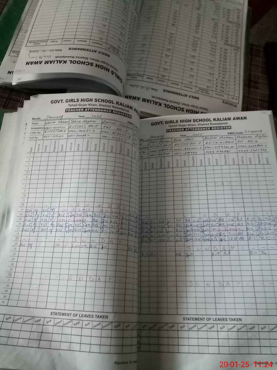 | CNIC | Full Name | Designation | R/C | Absence During Last Calender Month |