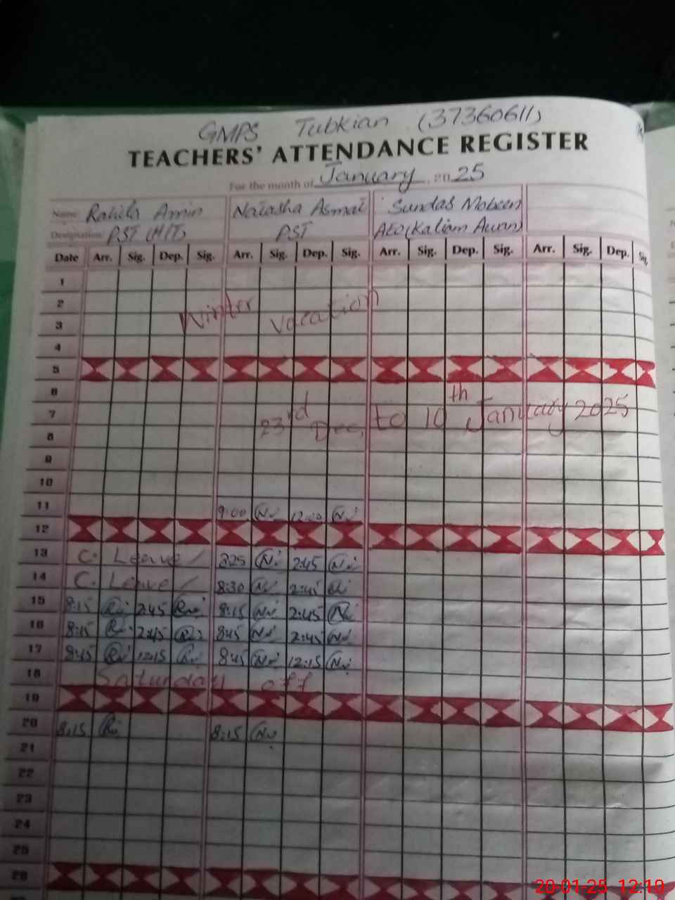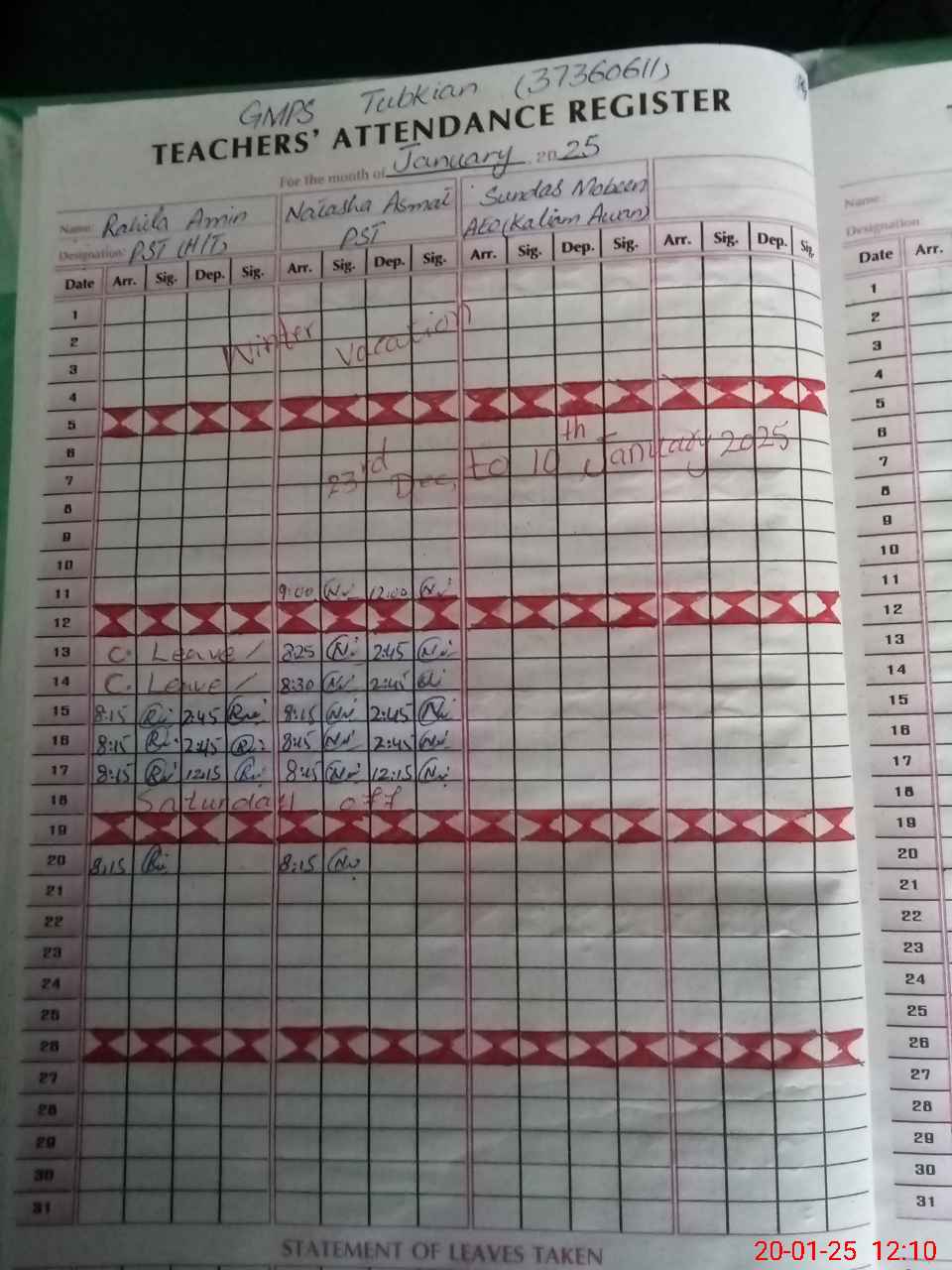 | CNIC | Full Name | Designation | R/C | Absence During Last Calender Month |