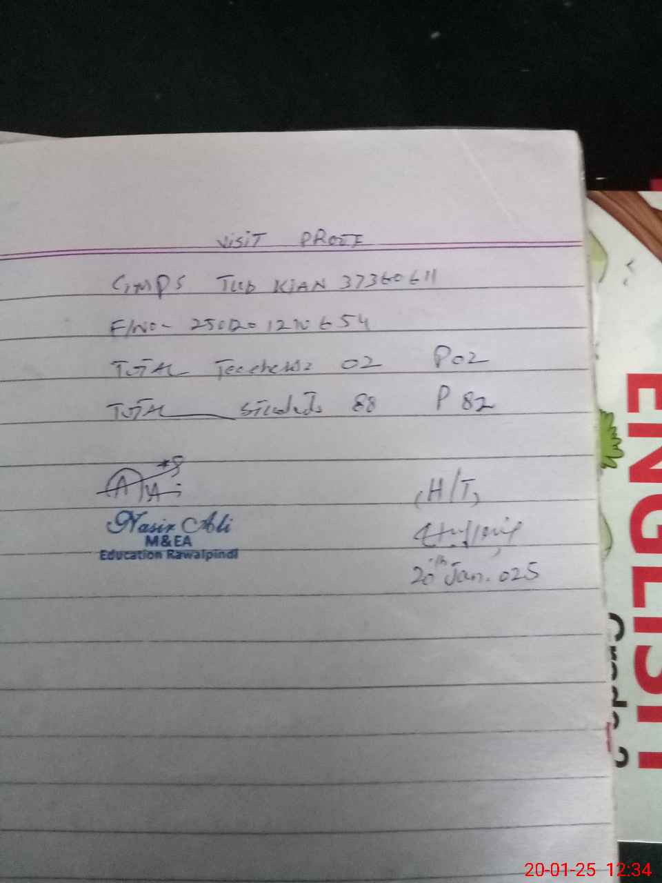 | Attendance Register | Head Teacher | MEA with School | Visit Proof |