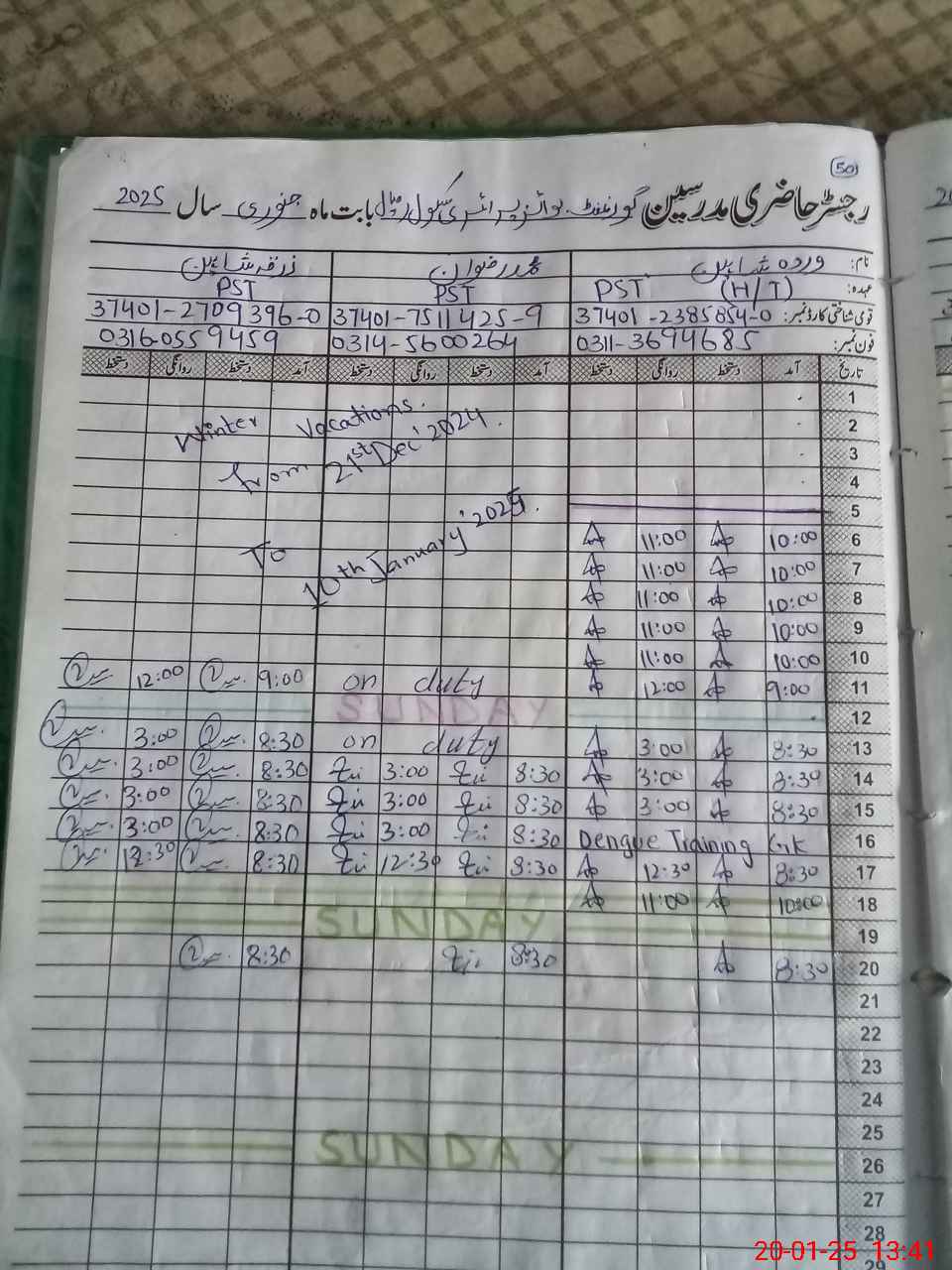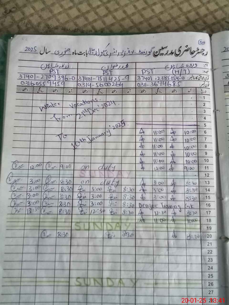 | Name: Za**** Sh**** Designation: (School Headmaster's/Headmistress's) PST Phone/Cell Number: 03**** |