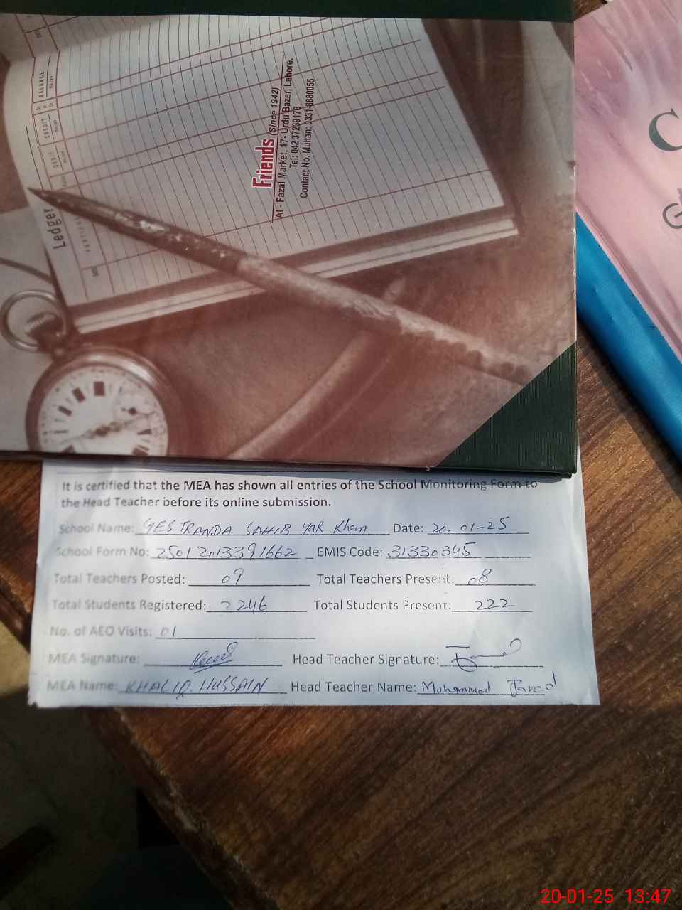 | Attendance Register | Head Teacher | MEA with School | Visit Proof |