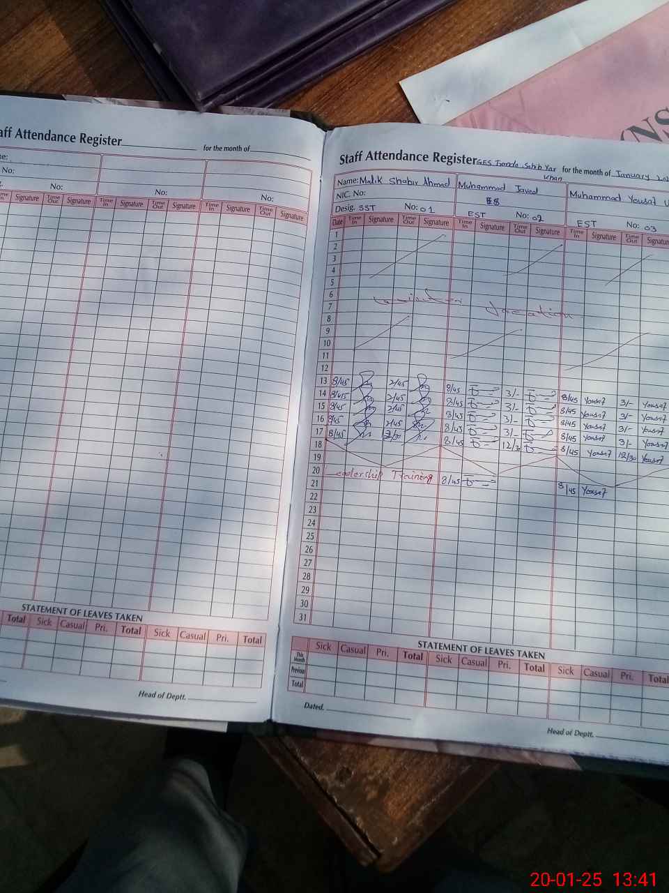 | 31**** | Ma**** Sh**** Ah**** | SST | Regular | 0 | 0 | 0 | 0 | 0 | 0 | 0 | 0 | 0 | Exam Duty |