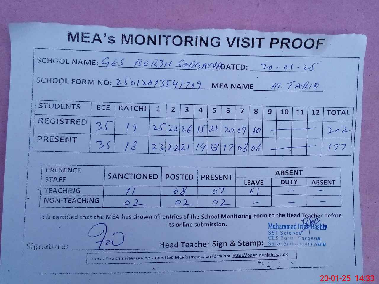 | EMIS Code: 36410063 | Name of School: GES BARJH SARGANA, SARAI SIDHU | |||