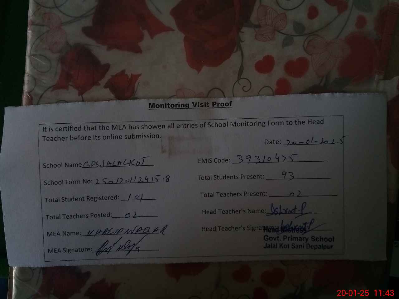 | EMIS Code: 39310475 | Name of School: GPS JALAL KOT SANI | |||