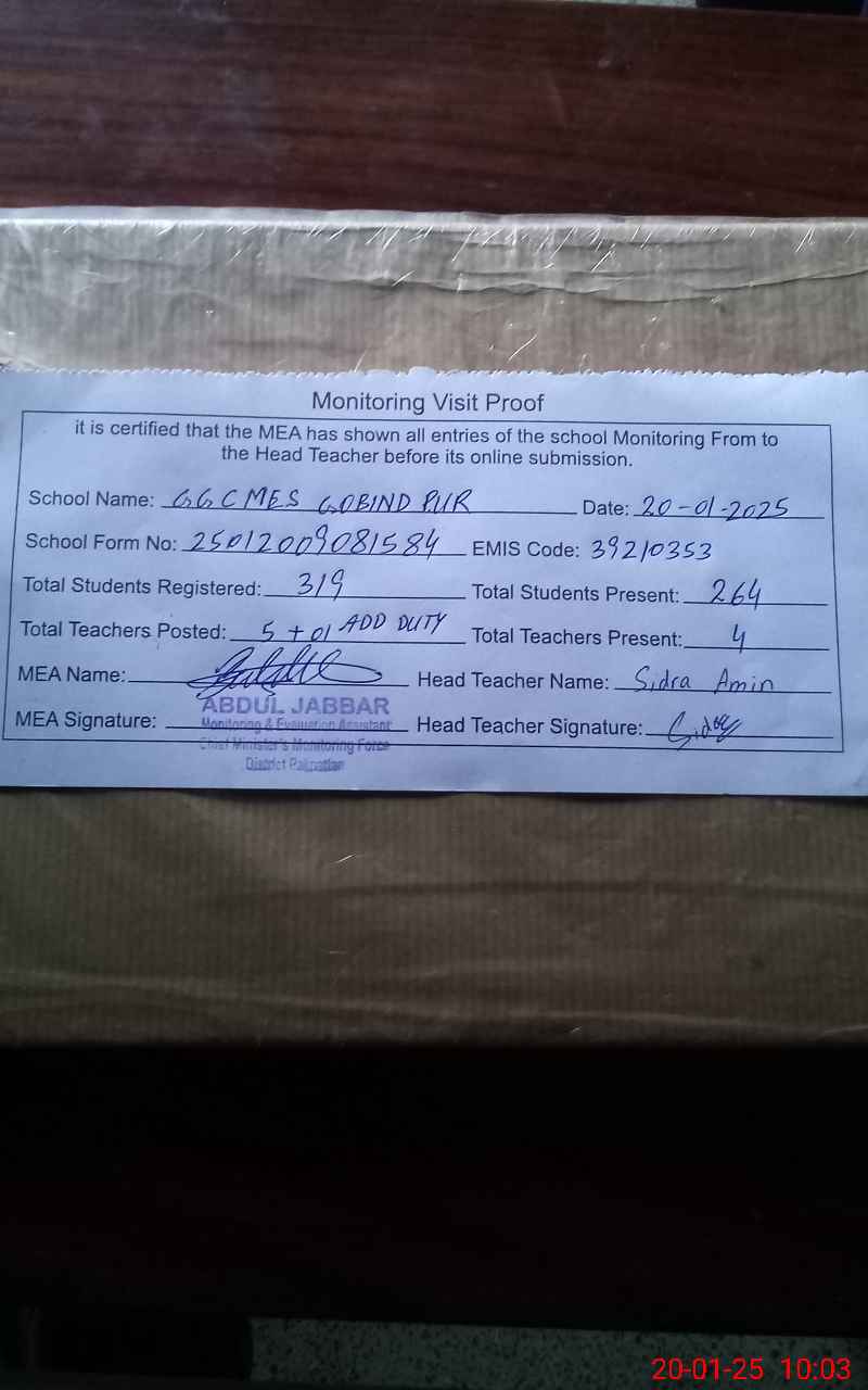 | EMIS Code: 39210353 | Name of School: GGCMES GOBIND PUR | |||