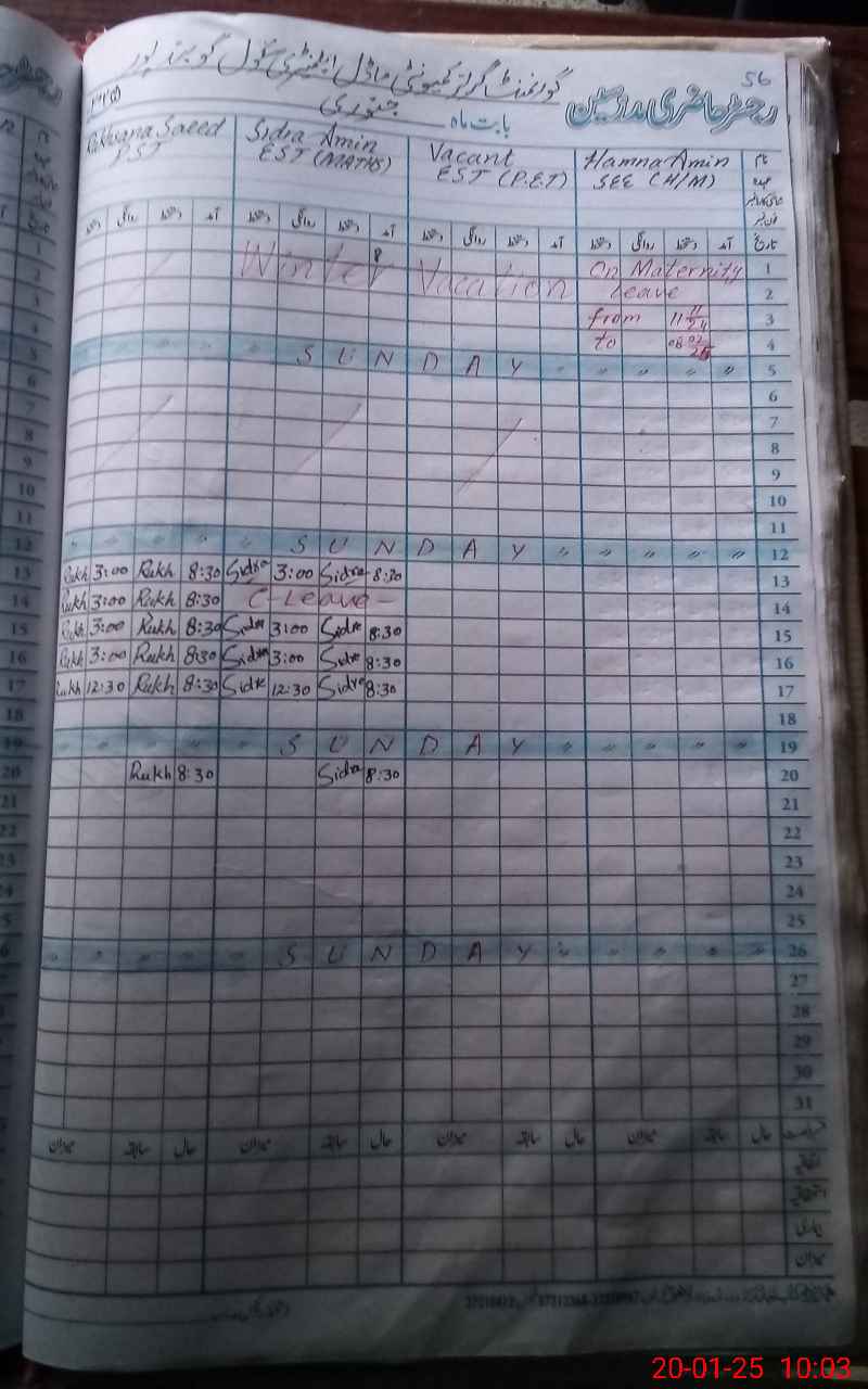 | Leave | Duty | Absent | Maternity | Medical | Ex- Pak |