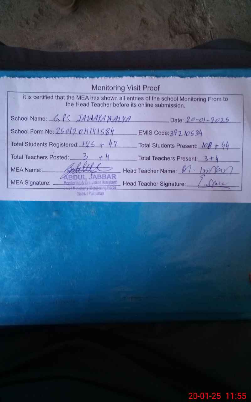 | EMIS Code: 39210534 | Name of School: GPS JAWAYAKALYA | |||