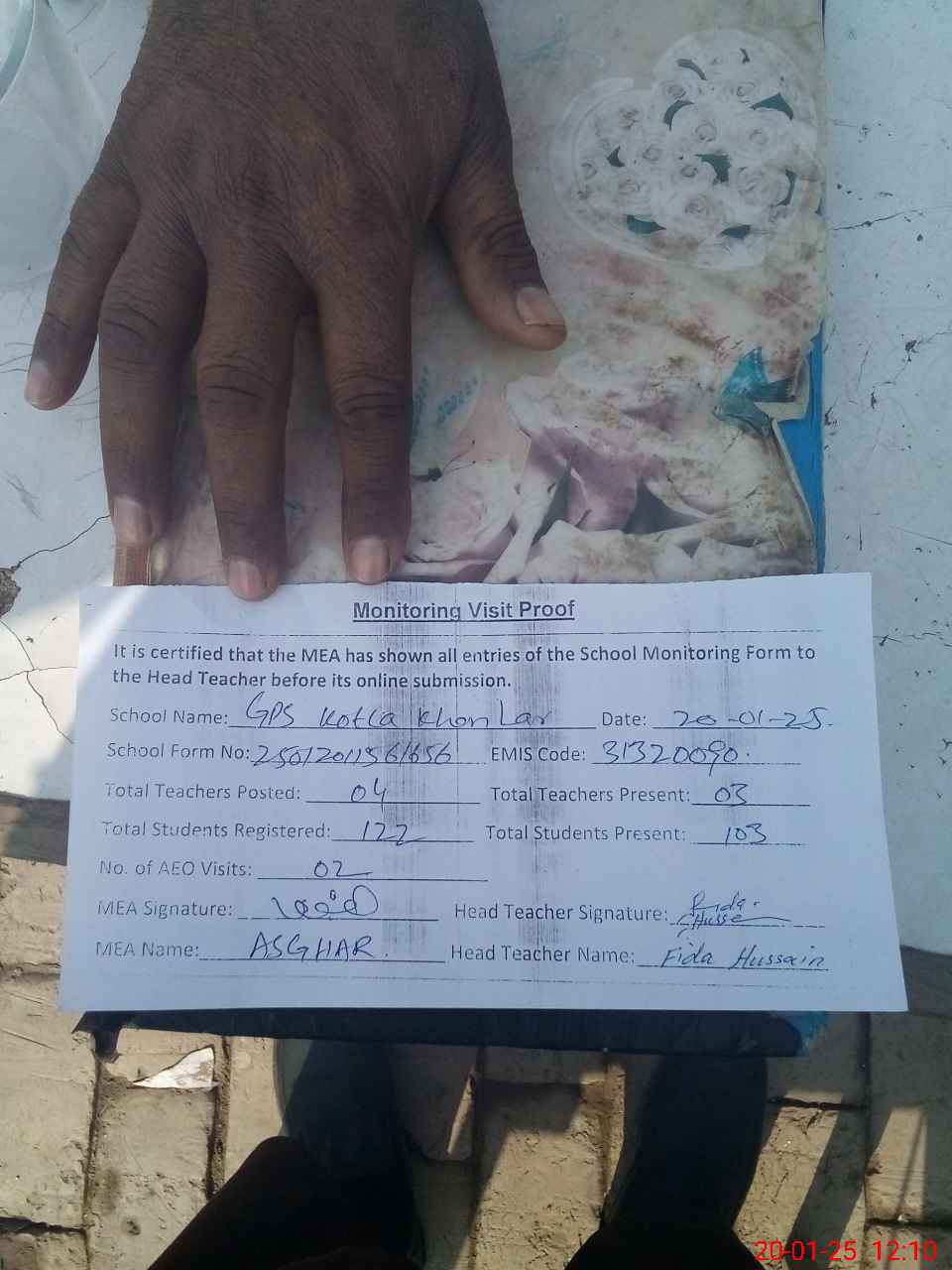 | Attendance Register | Head Teacher | MEA with School | Visit Proof |