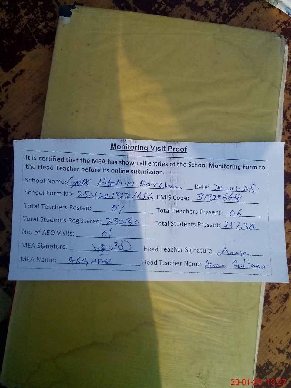 | EMIS Code: 31320668 | Name of School: GMPS FATEH MUHAMMAD DARKHAN | |||