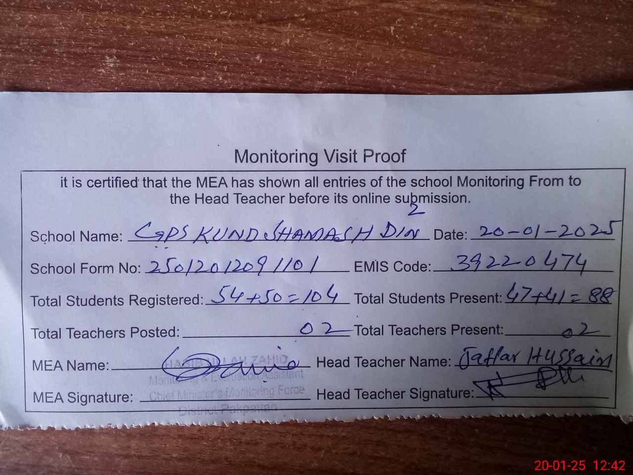 | EMIS Code: 39220474 | Name of School: GPS KUND SHAMAS DIN NO 2 | |||