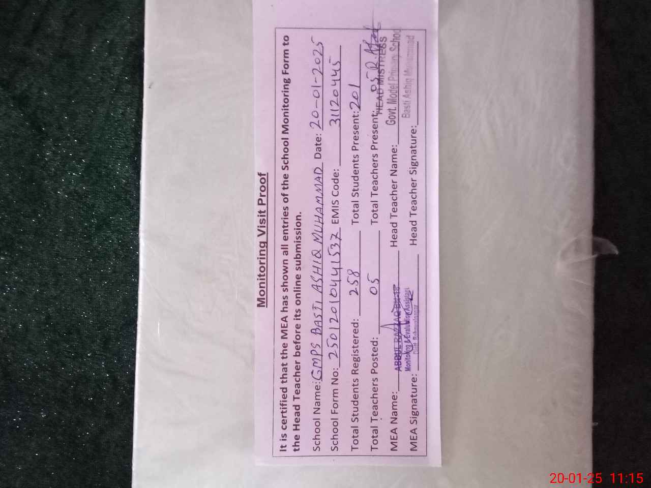 | EMIS Code: 31120445 | Name of School: GMPS BASTI ASHIQ MUHAMMAD | |||
