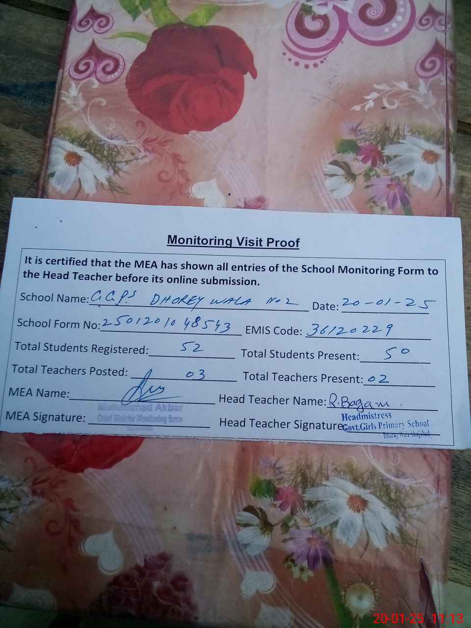 | EMIS Code: 36120229 | Name of School: GGPS DHORAY WALA NO. 2 SHUJABAD | |||