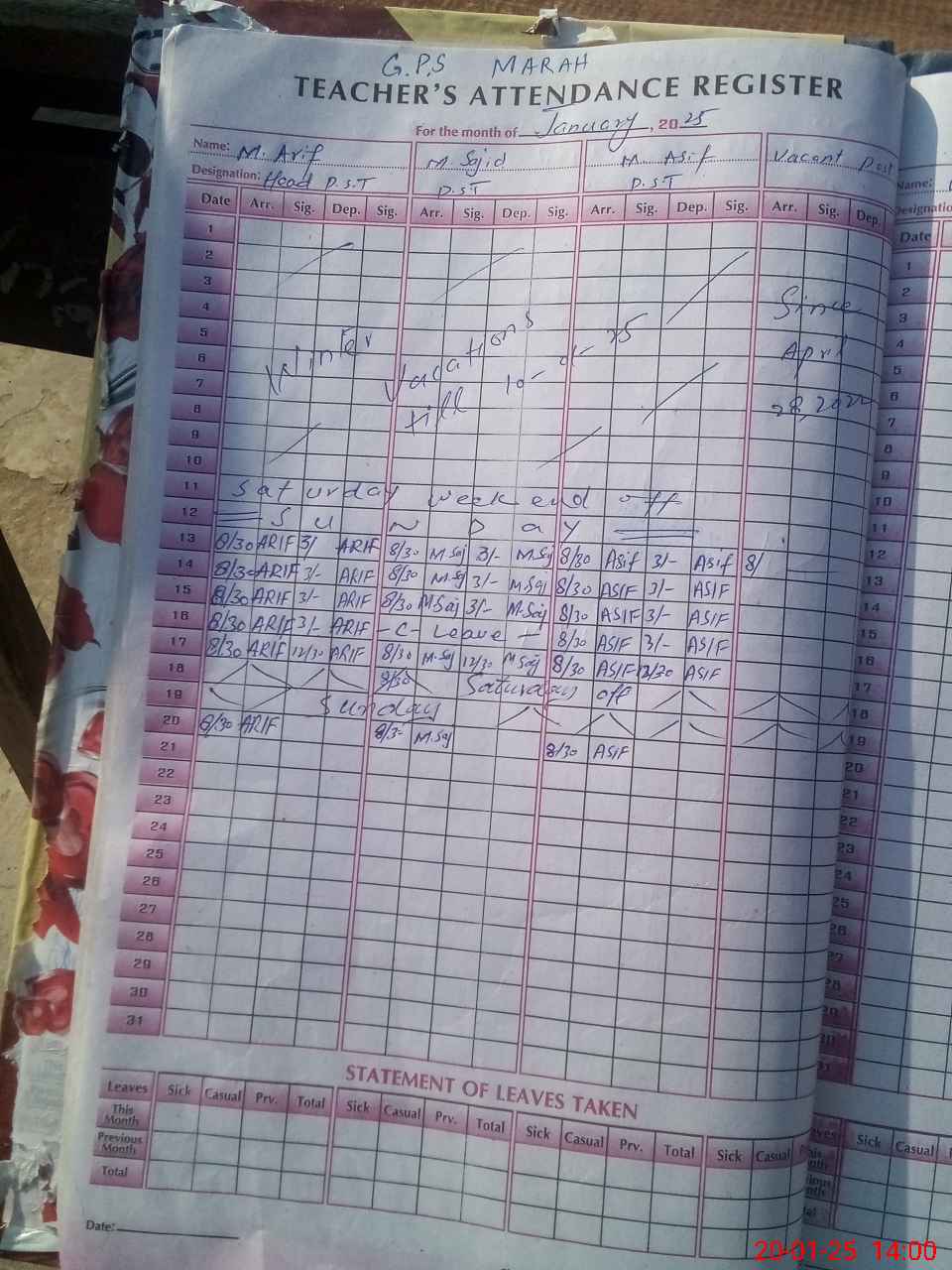 | EMIS Code: 36120080 | Name of School: GPS MARAH P/O AGHAR KHANI TEH. SHUJABAD | |||