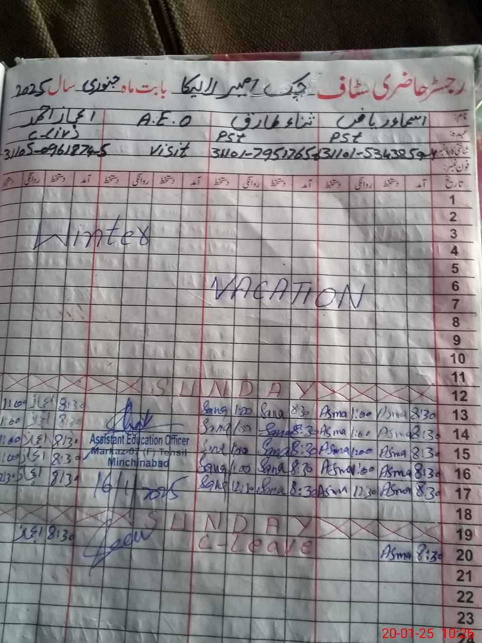 | Name: As**** Ri**** Designation: (School Headmaster's/Headmistress's) PST Phone/Cell Number: 03**** |