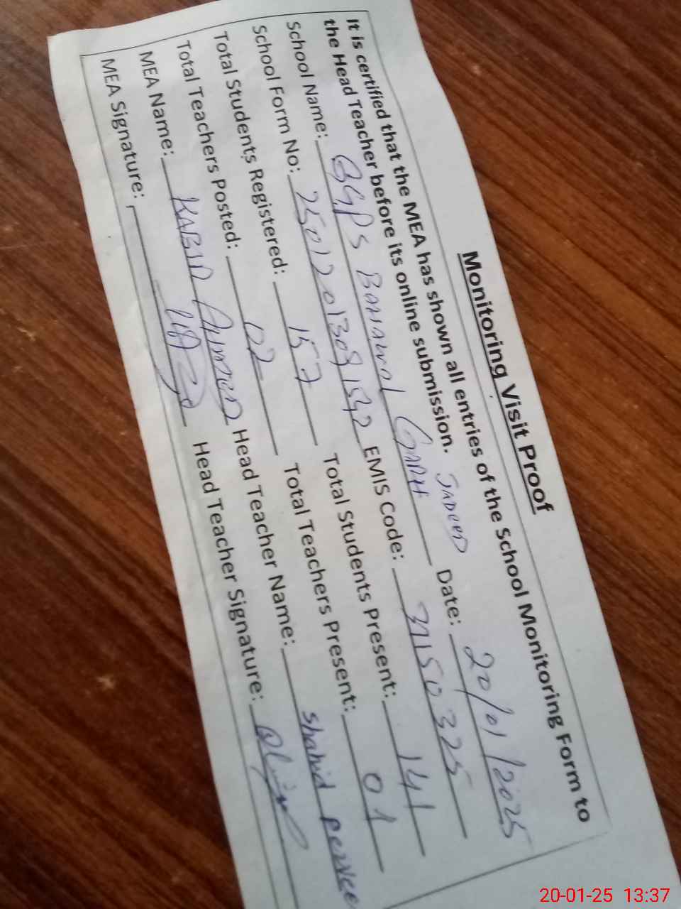 | EMIS Code: 31150325 | Name of School: GGPS BAHAWAL GARH JADEED | |||