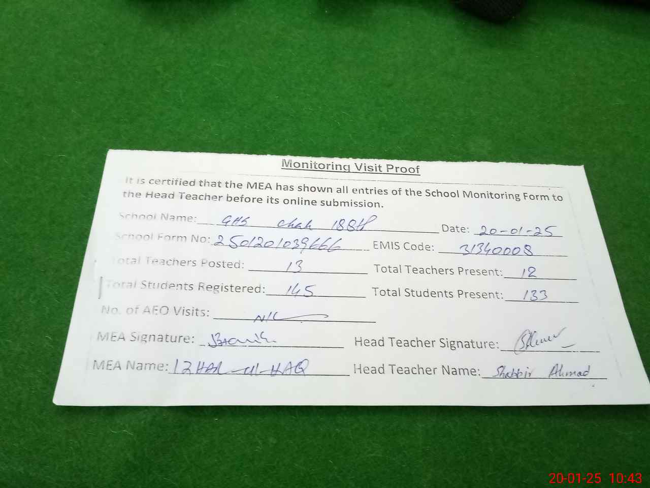 | EMIS Code: 31340008 | Name of School: GHS CHAK NO. 188/P | |||