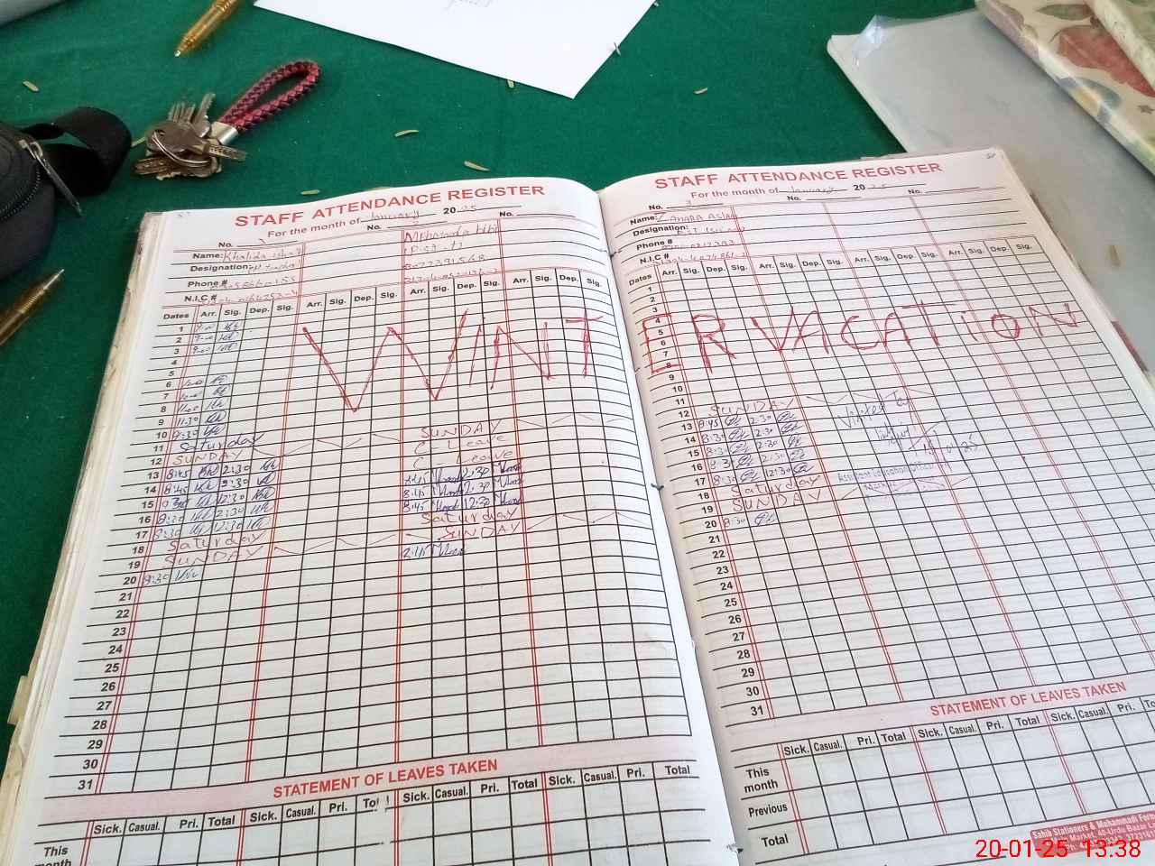 | CNIC | Full Name | Designation | R/C | Absence During Last Calender Month |