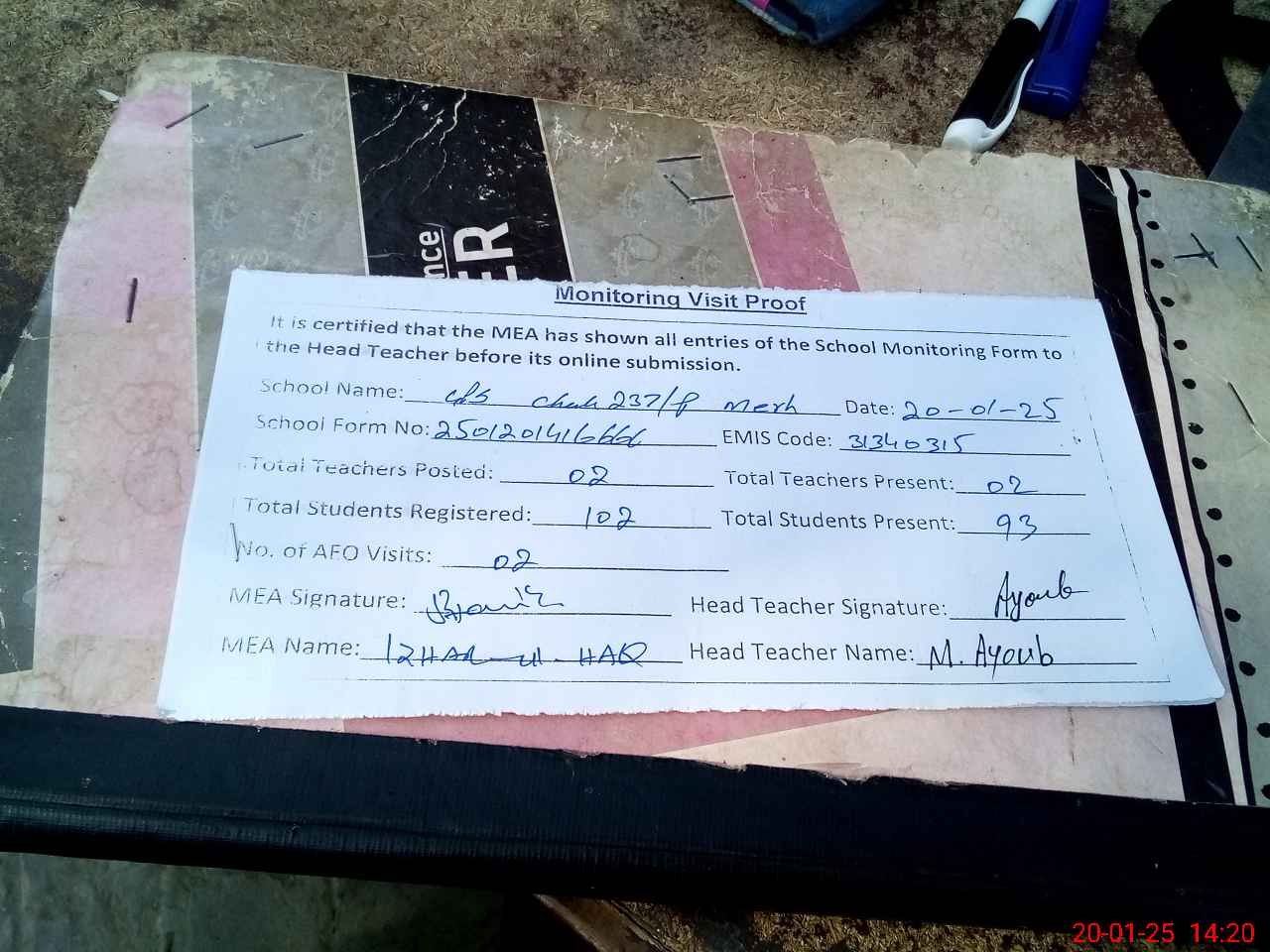 | EMIS Code: 31340315 | Name of School: GPS CHAK NO 237/P MERH | |||