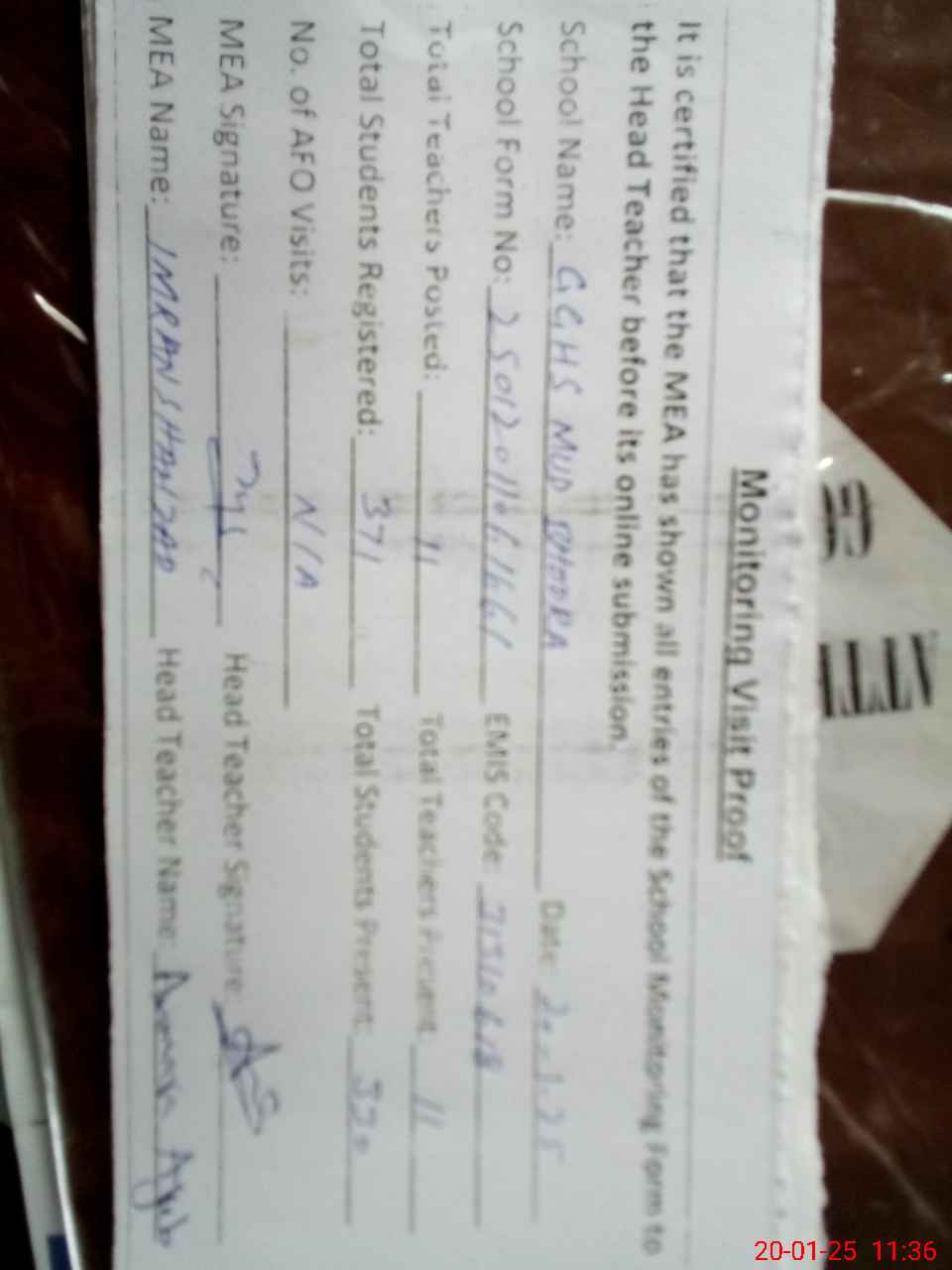 | EMIS Code: 31310618 | Name of School: GGHS MUD BHOORA | |||