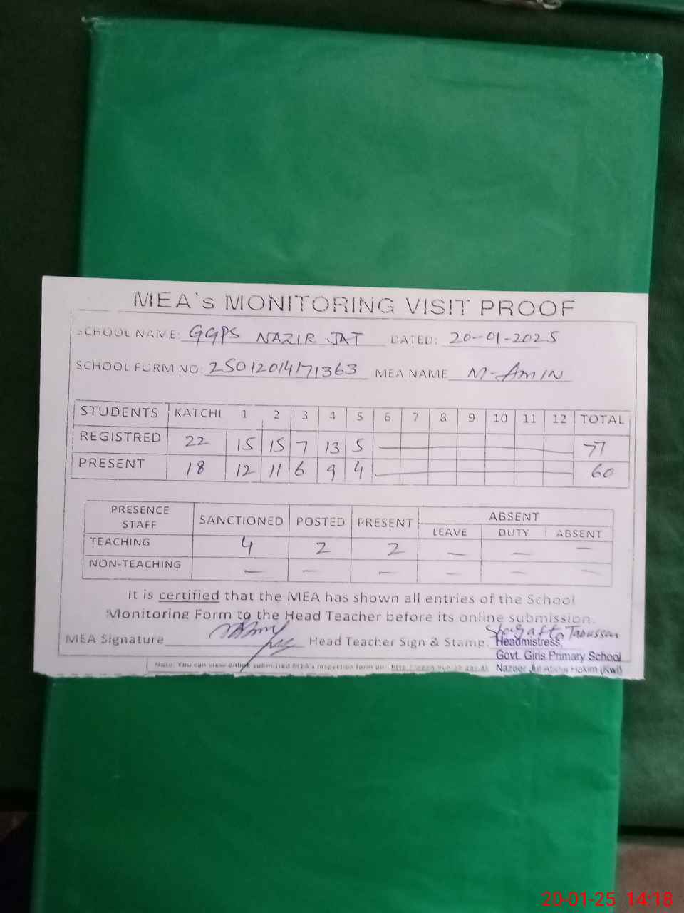 | EMIS Code: 36410447 | Name of School: GGPS NAZIR JAT, ABDUL HAKIM | |||