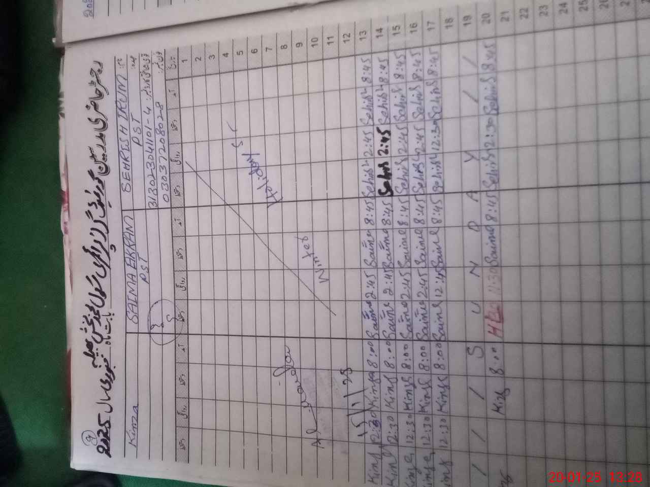 | Name: SE**** IR**** Designation: (School Headmaster's/Headmistress's) PST/PTC/JV Phone/Cell Number: 03**** |