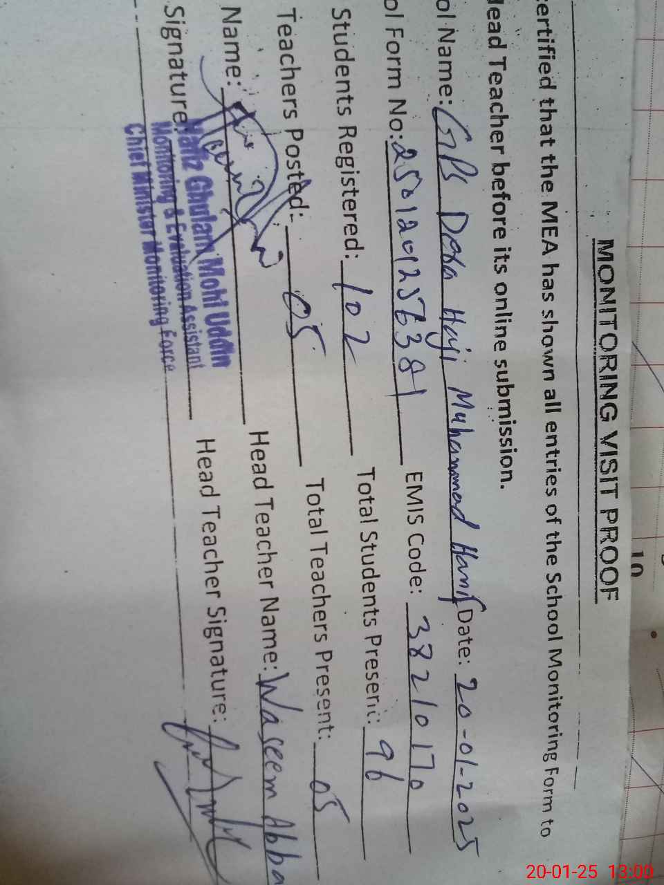 | EMIS Code: 38210170 | Name of School: GPS DERA HAJI HANIF | |||