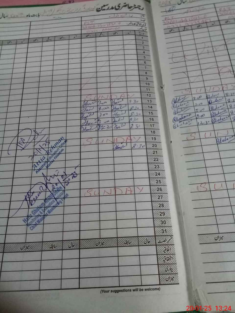 | CNIC | Full Name | Designation | R/C | Absence During Last Calender Month |