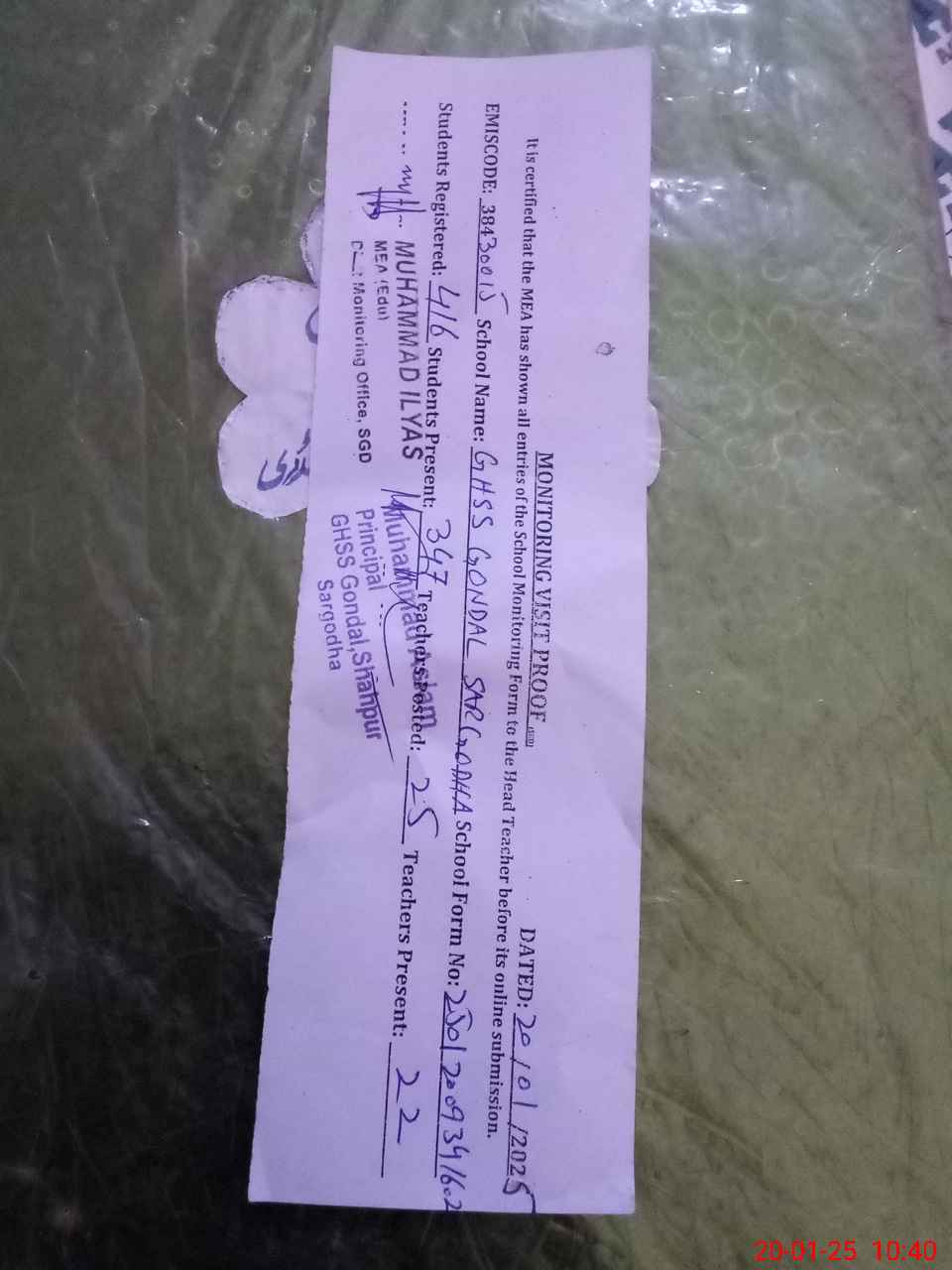 | EMIS Code: 38430015 | Name of School: GHSS GONDAL SARGODHA | |||
