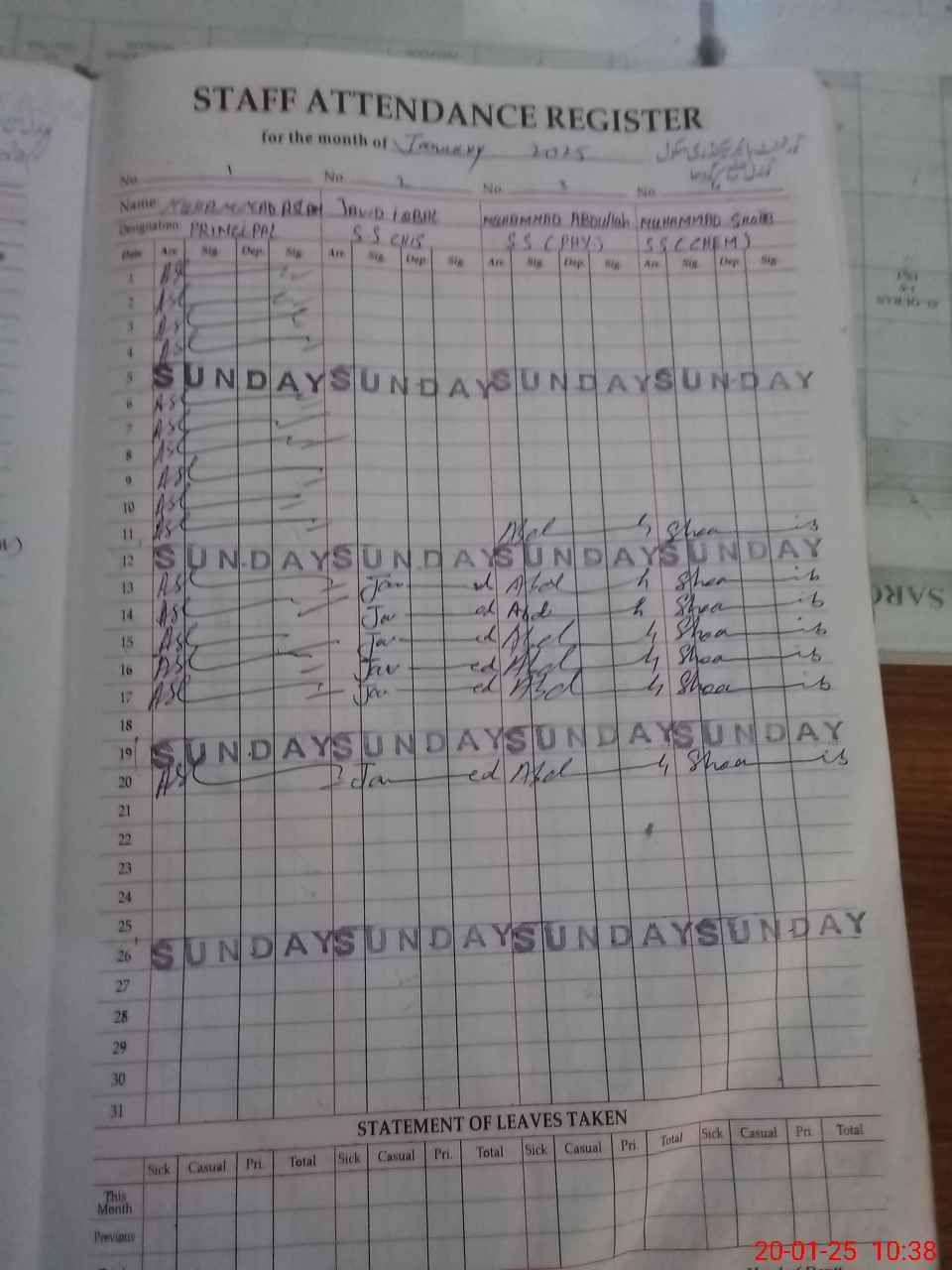 | CNIC | Full Name | Designation | R/C | Absence During Last Calender Month |
