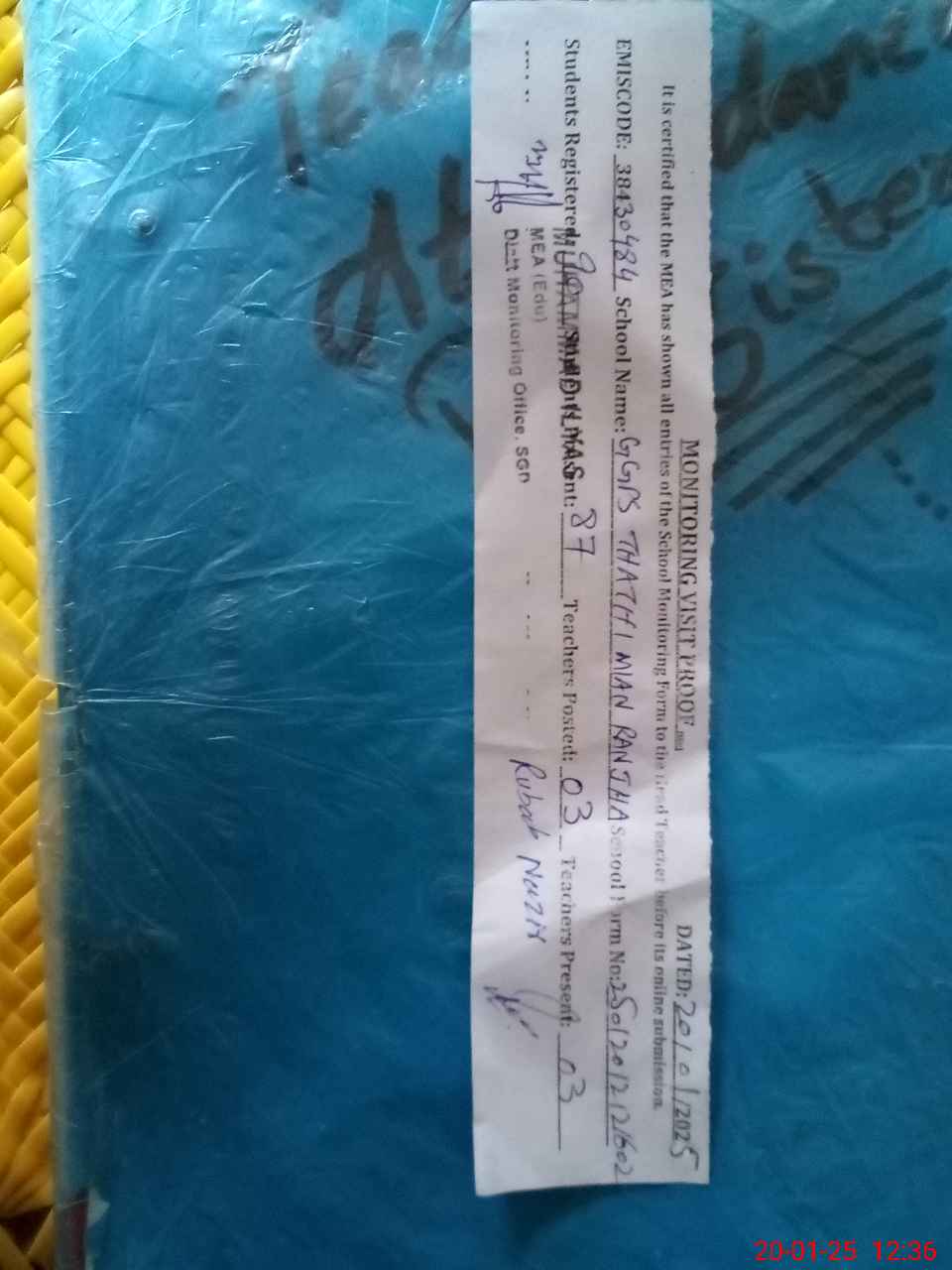 | Attendance Register | Head Teacher | MEA with School | Visit Proof |