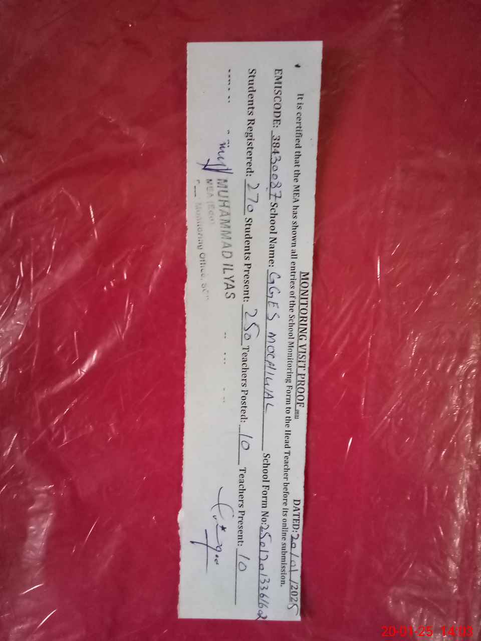 | EMIS Code: 38430087 | Name of School: GGES MOCHI WAL | |||