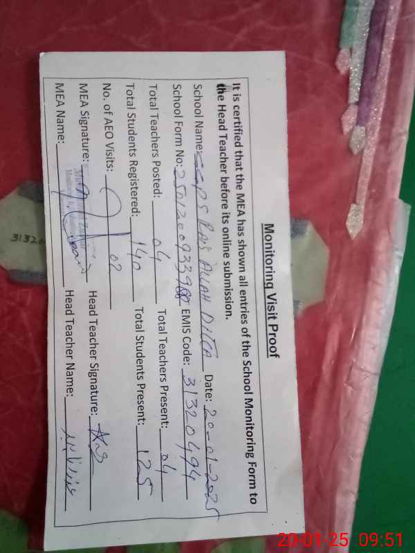 | Attendance Register | Head Teacher | MEA with School | Visit Proof |