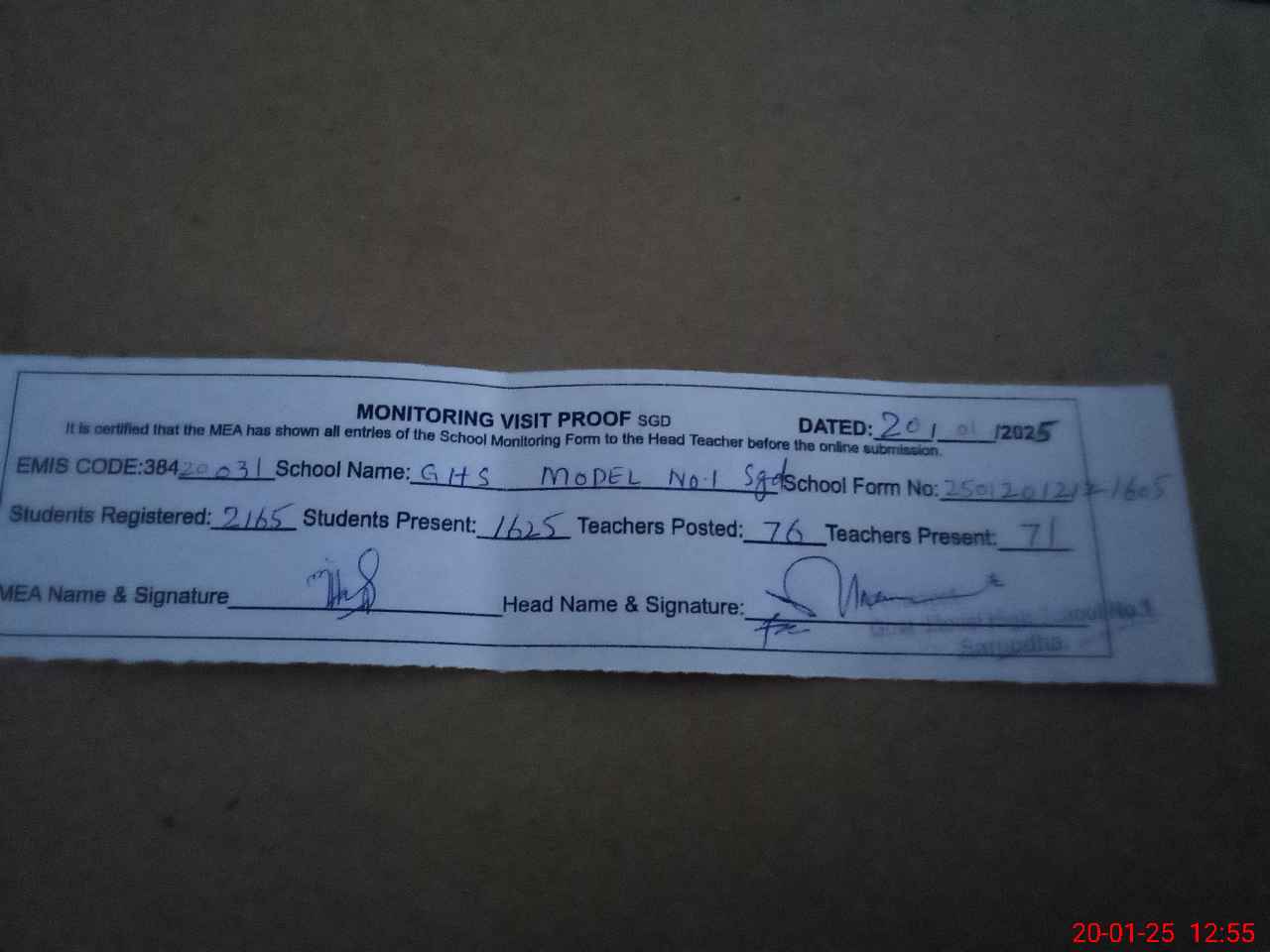| EMIS Code: 38420031 | Name of School: GHS MODEL NO.1 SARGODHA | |||