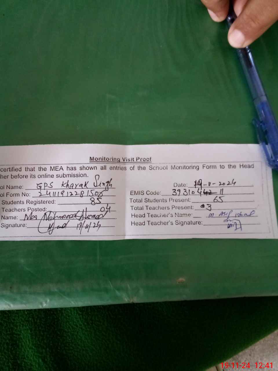 | EMIS Code: 39310411 | Name of School: GPS CHAK KHARAK SINGH | |||