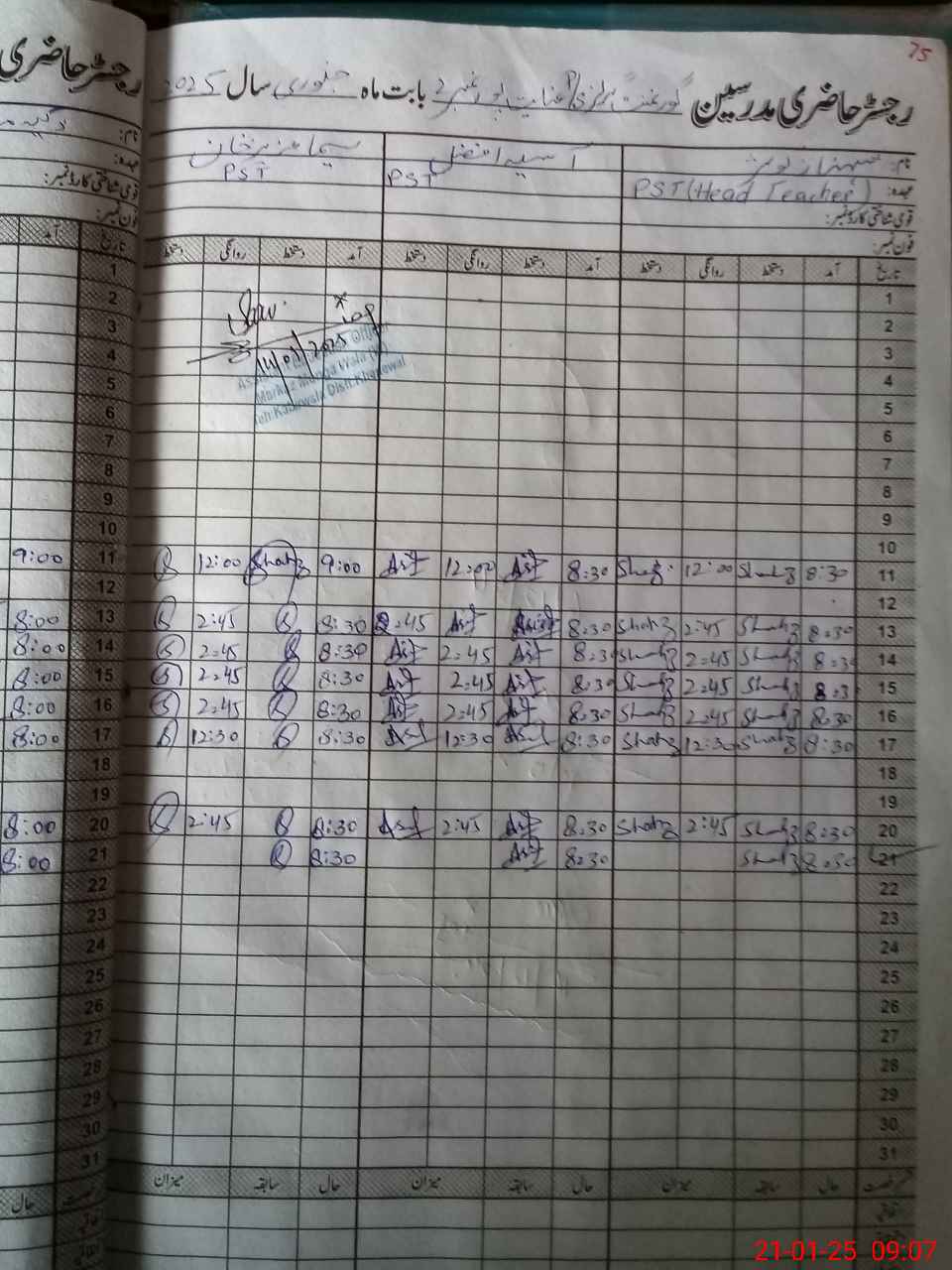 | CNIC | Full Name | Designation | R/C | Absence During Last Calender Month |