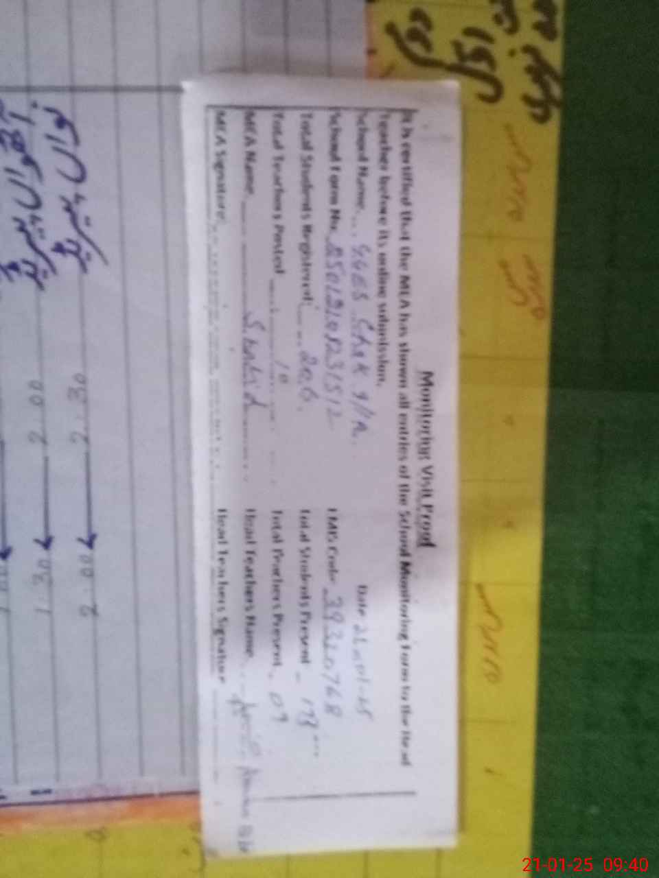 | Certified that this School was Inspected by the Undersigned MEA/DMO Today and the Information Stated Above is as Per Record. | |||||