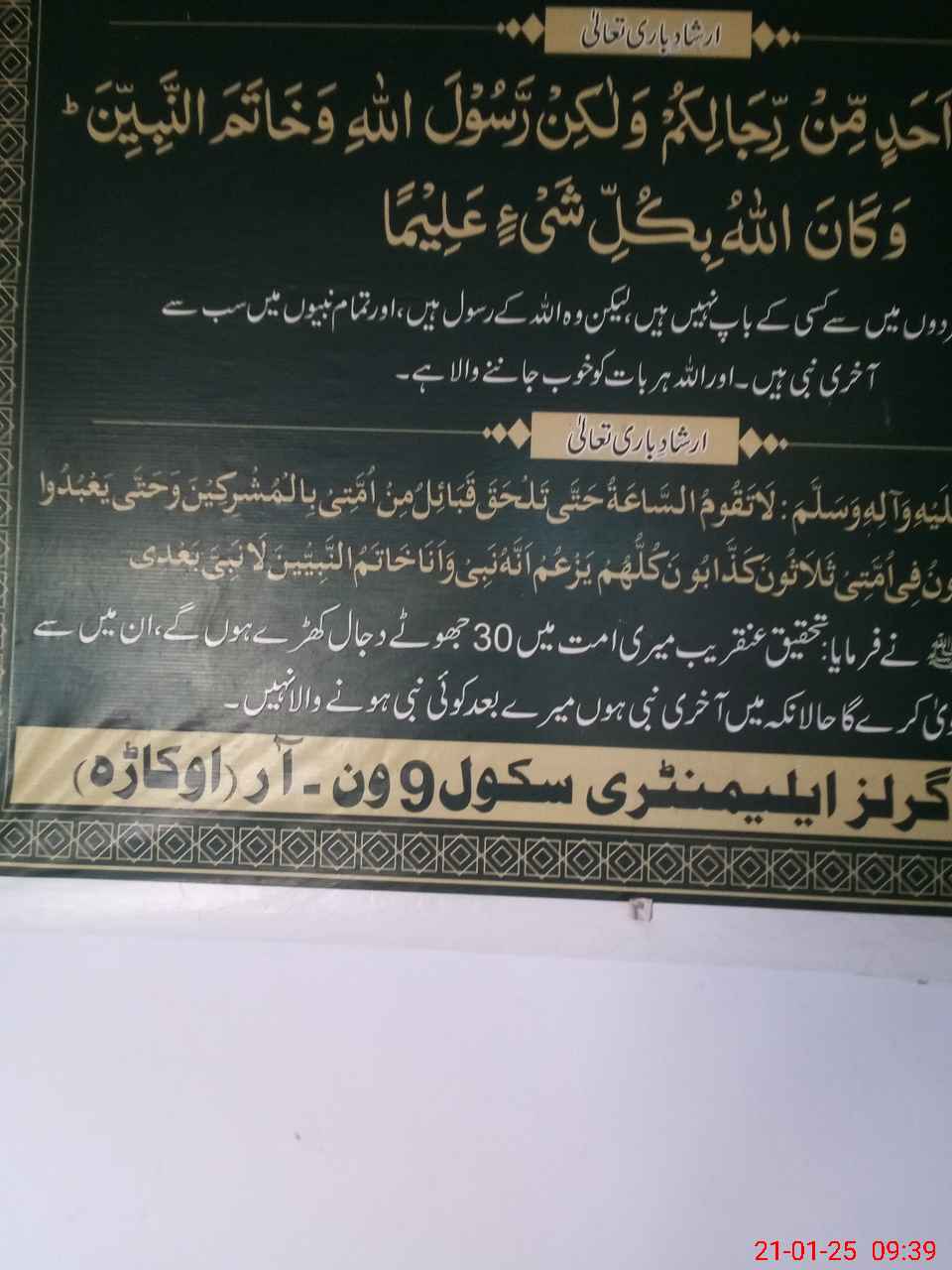 | District: OKARA | Tehsil: RENALA KHURD | Markaz: 4/GD - FEMALE | Level: Middle | |