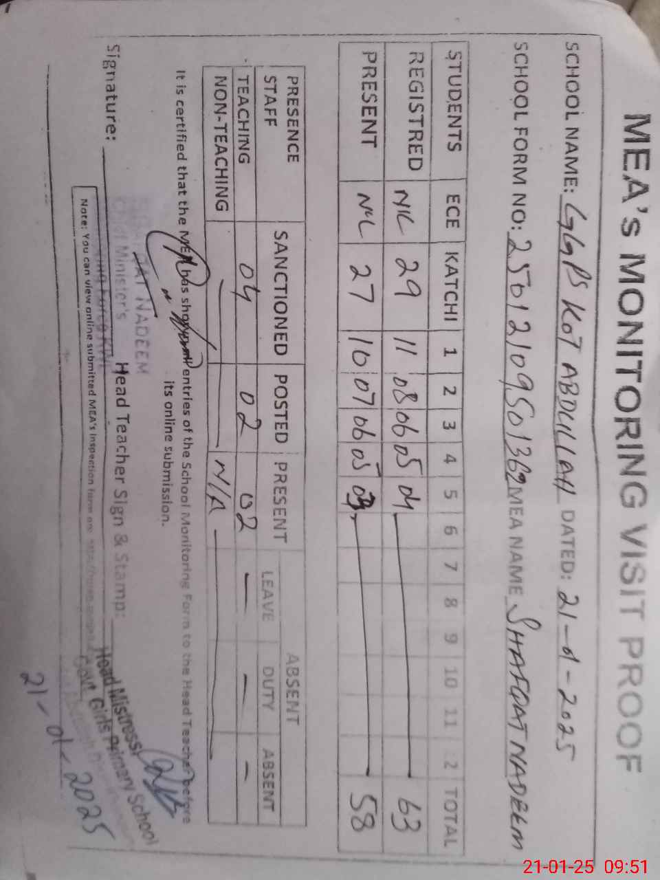 | EMIS Code: 36420373 | Name of School: GGPS KOT ABDULLAH, KHANEWAL | |||
