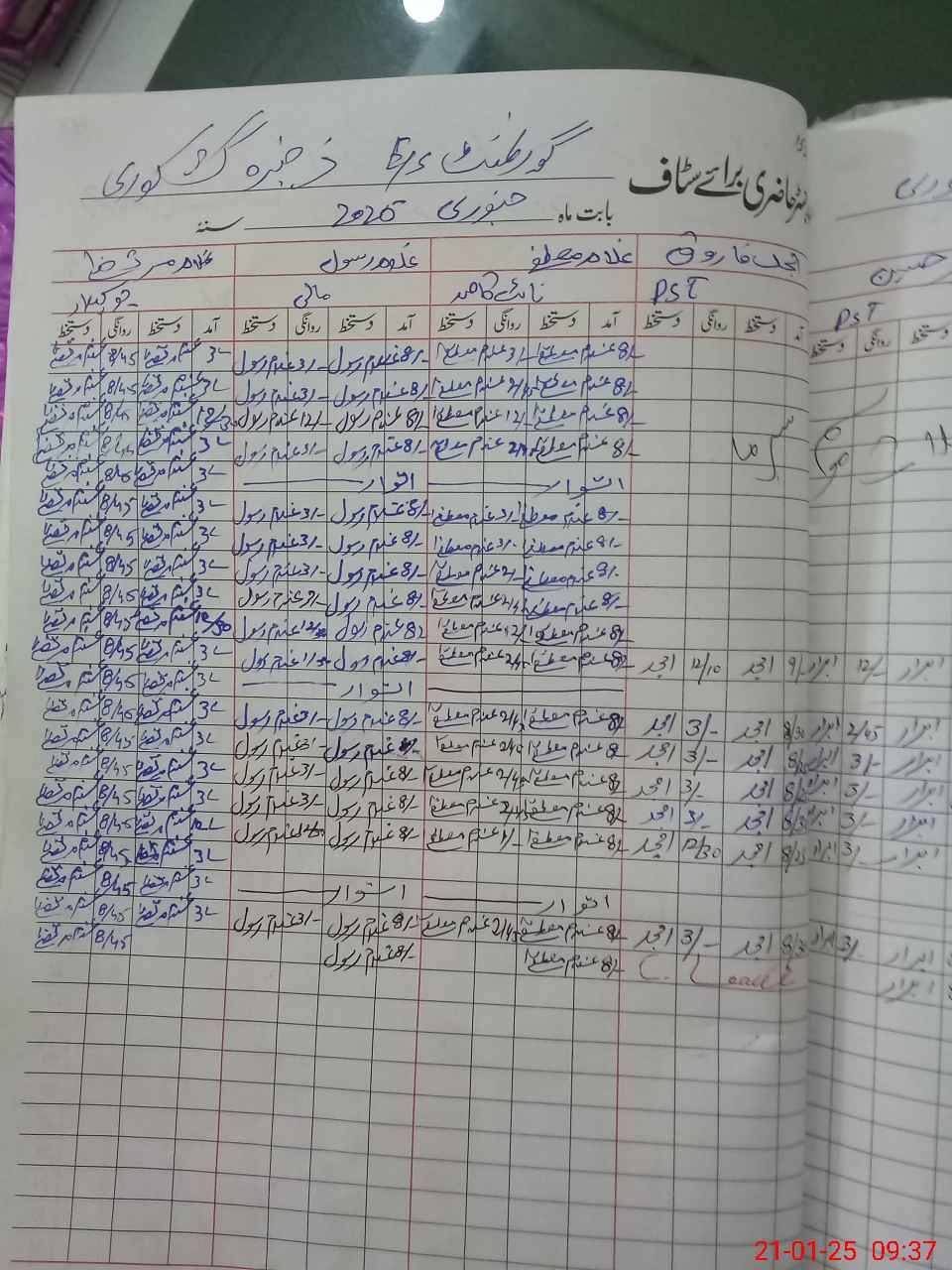 | CNIC | Full Name | Designation | R/C | Absence during last cal. month |