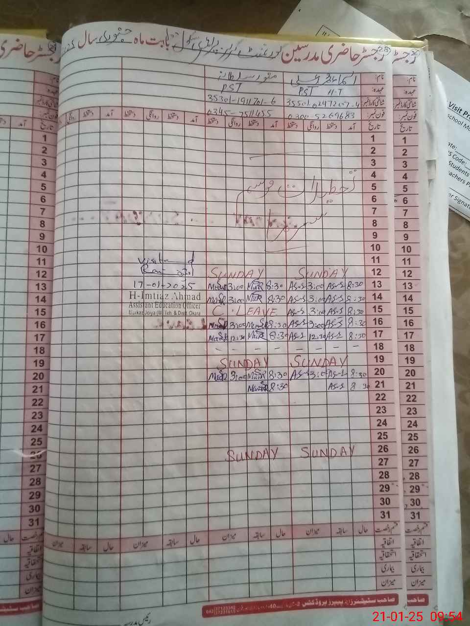 | Name: As**** MAl**** Designation: (School Headmaster's/Headmistress's) PST Phone/Cell Number: 03**** |
