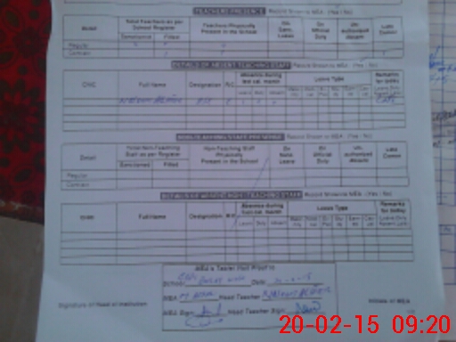 | Attendance Register | Head Teacher | MEA with School | Visit Proof |