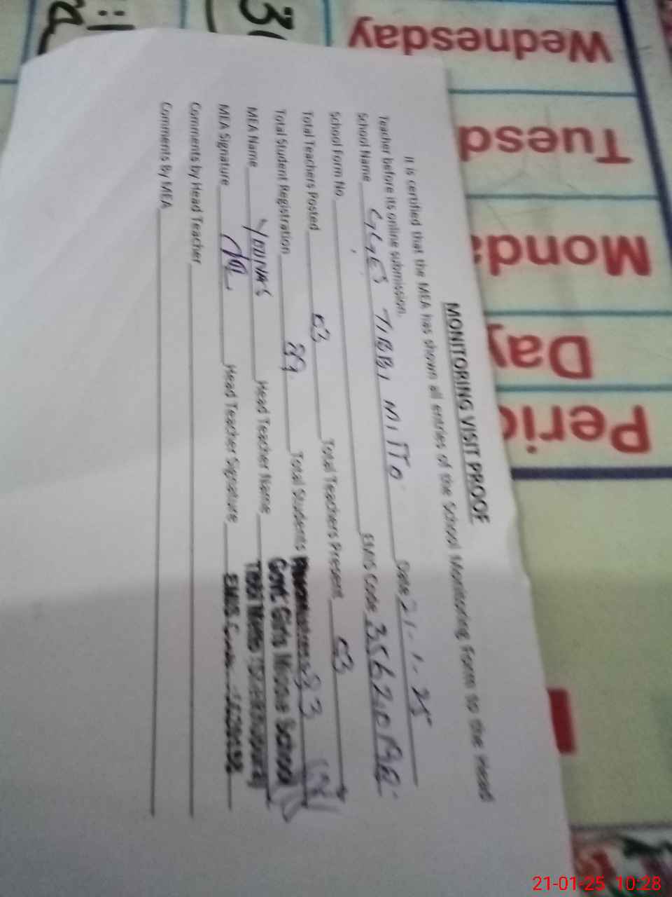 | Attendance Register | Head Teacher | MEA with School | Visit Proof |