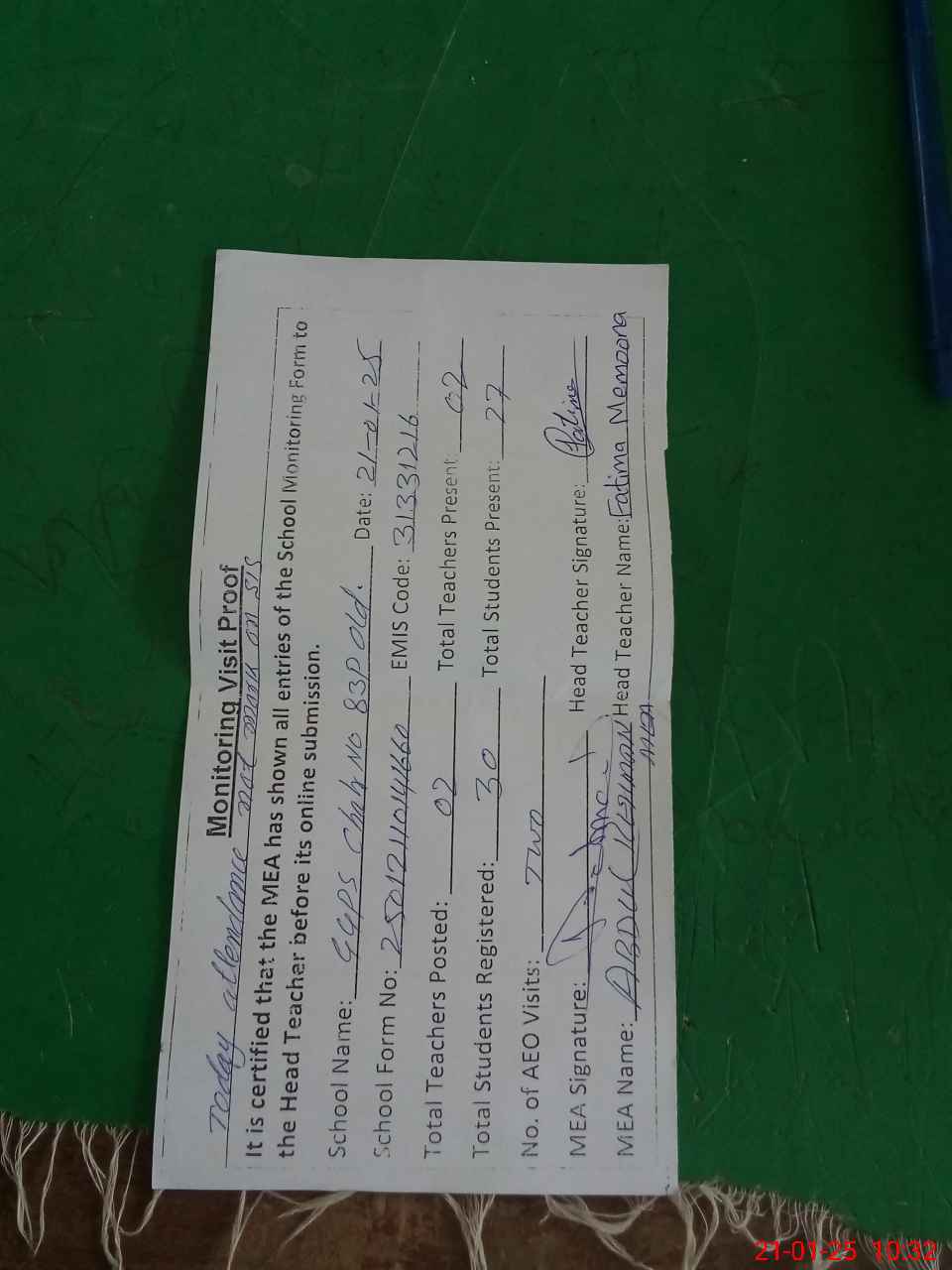 | EMIS Code: 31331216 | Name of School: GGPS CHAK NO.83/P OLD | |||