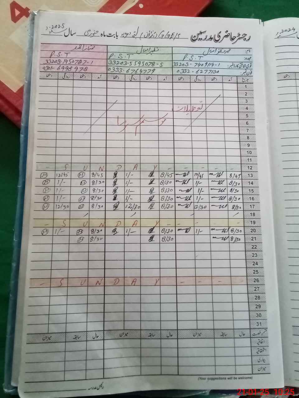 | Name: MU**** MU**** IQ**** Designation: (School Headmaster's/Headmistress's) PST Phone/Cell Number: 03**** |