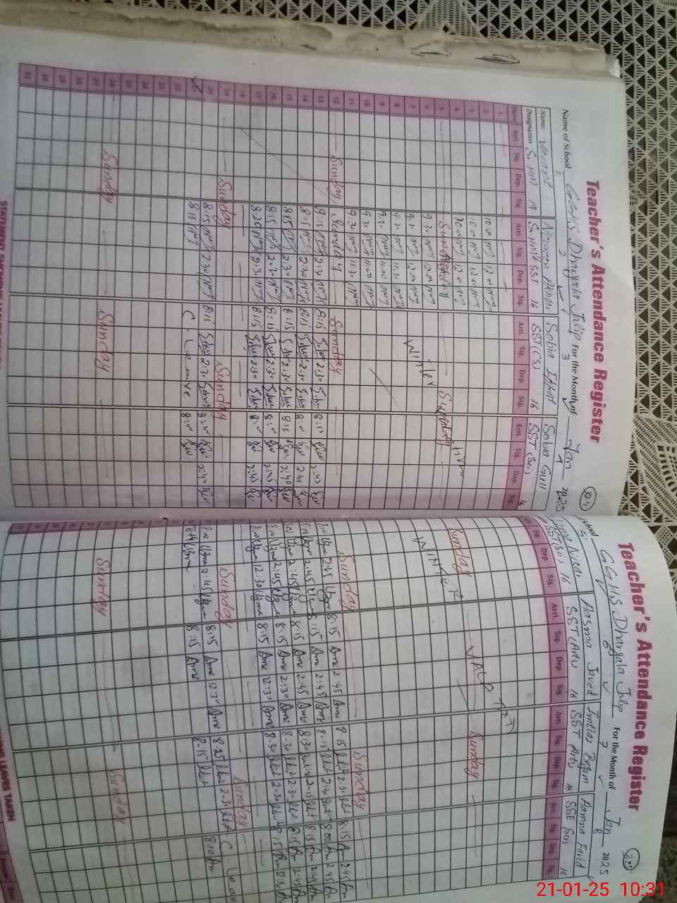 | CNIC | Full Name | Designation | R/C | Absence During Last Calender Month |