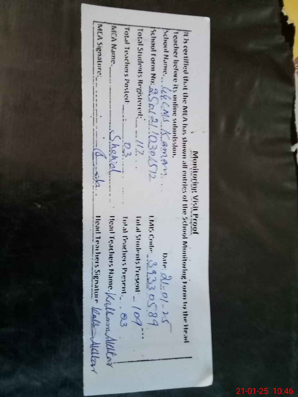 | Name: Ka**** Ak**** Designation: (School Headmaster's/Headmistress's) Headmaster Phone/Cell Number: 03**** |