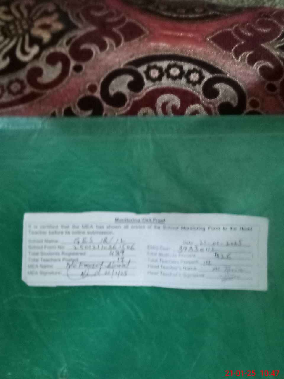 | Certified that this School was Inspected by the Undersigned MEA/DMO Today and the Information Stated Above is as Per Record. | |||||
